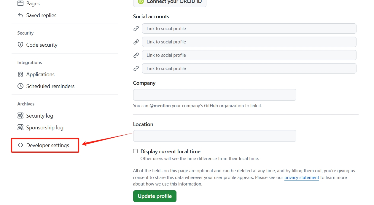 // (2) 填写github令牌