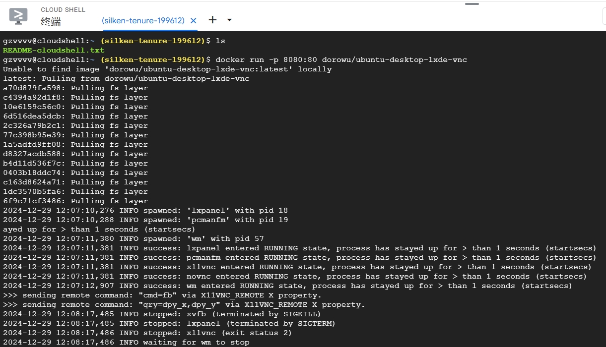 3、运行命令docker run -p 8080:80 dorowu/ubuntu-desktop-lxde-vnc