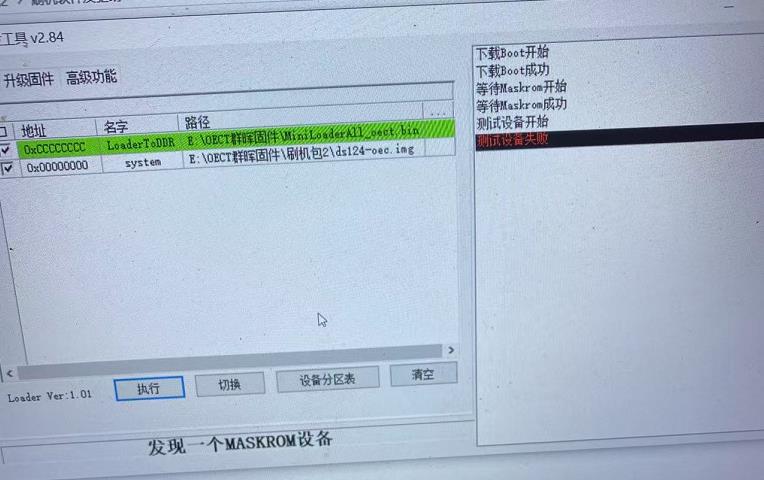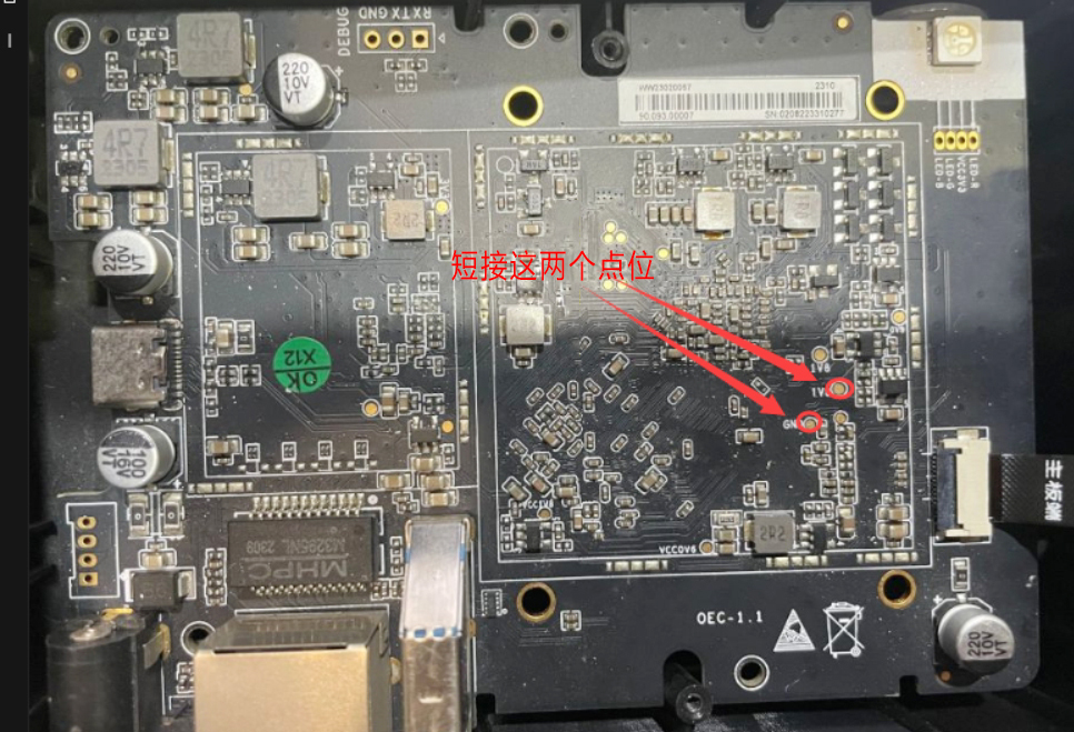 OEC-turbo 硬件V1.0 版变砖,一通电就自动进入 maskrom 模式,不用短接焊点。 此时做任何刷入操作,时都提示“下载失败”,在刷机工具上读取各种信息都提示“失败”。