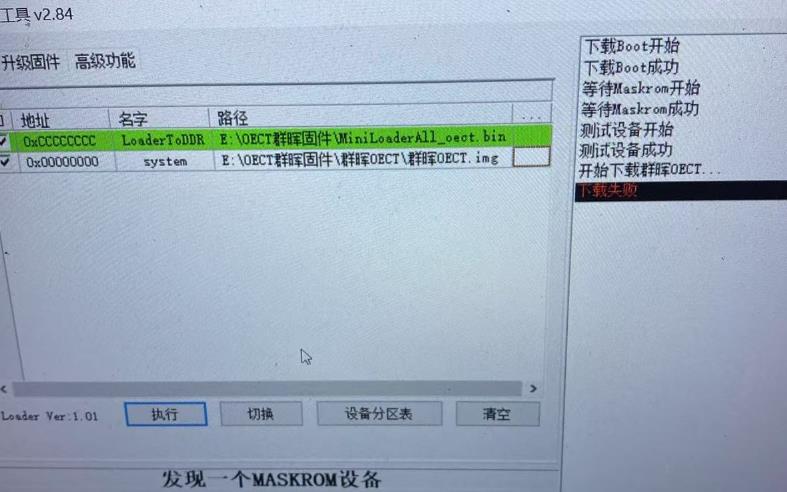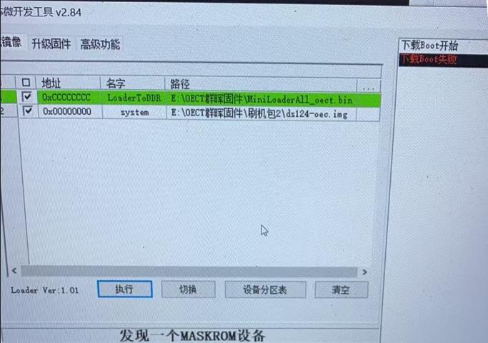 有一种黑砖情况就是板子没有任何响应,加电即进入Maskrom模式。有点类似上面提到的玄学刷机派:一通电就自动进入 maskrom 模式,不用短接焊点。 此时做任何刷入操作,时都提示“下载失败”,在刷机工具上读取各种信息都提示“失败”。这种情况下先刷一个完整的底包,再刷其他包就可以了。