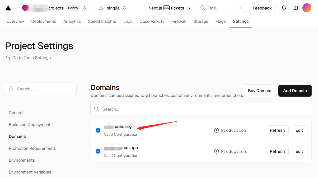 - Vercel 会自动验证域名所有权(若 DNS 已切换到 Cloudflare,通常会自动通过),验证通过后,Vercel 会生成 SSL 证书(无需手动操作)。