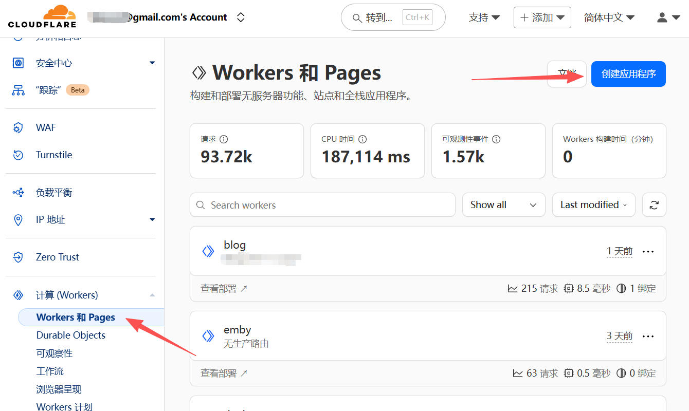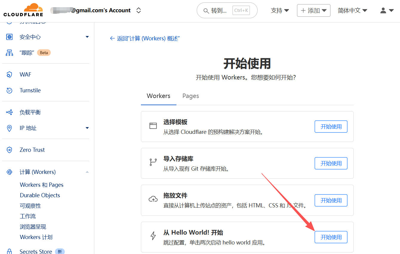 1、进Cloudflare workers,创建一个空白的wokers应用,名称任意。如下图:
