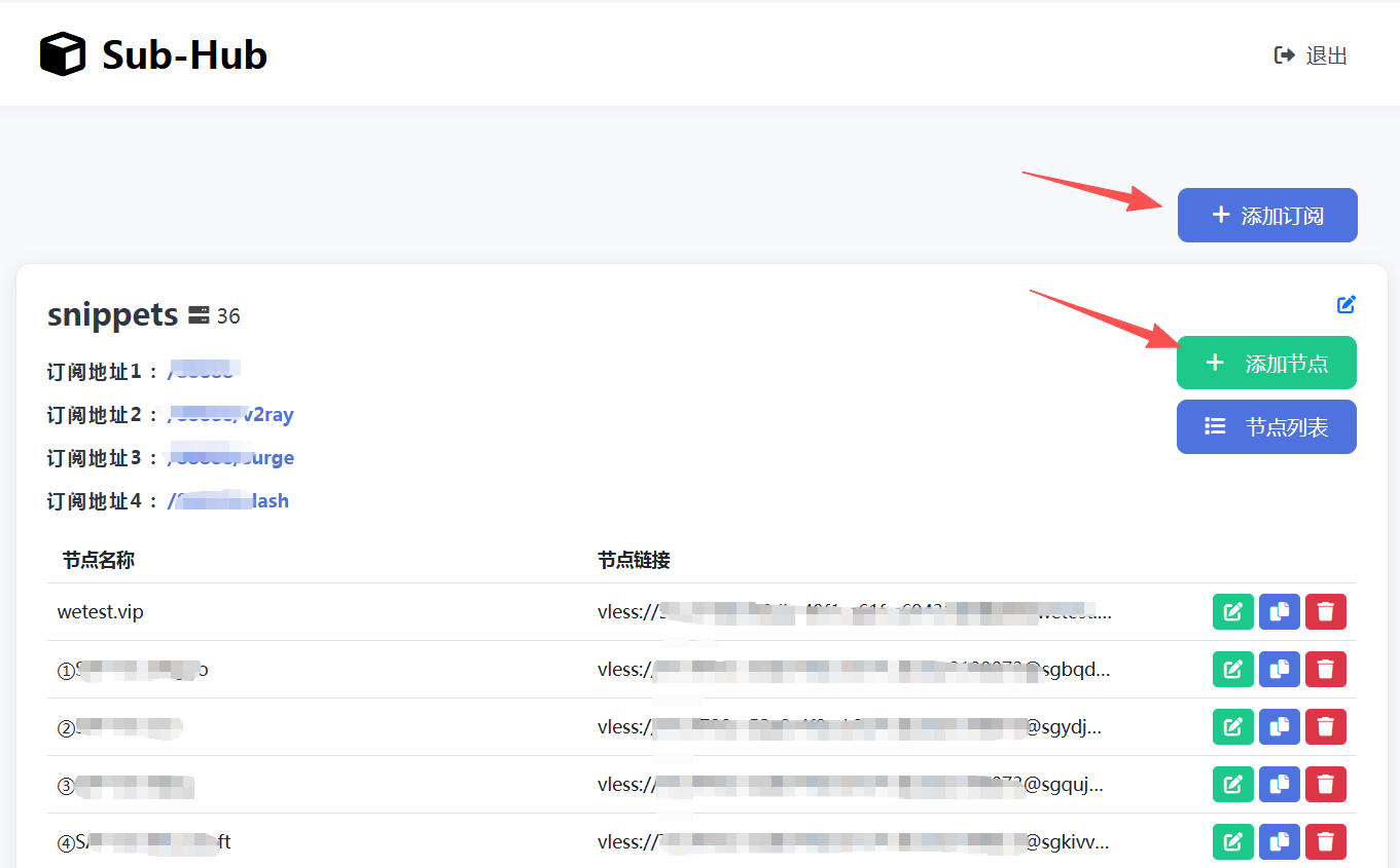 Sub-Hub 是一个基于 Cloudflare Workers 的代理节点订阅管理系统。它提供了一个直观的 Web 界面,让您可以轻松管理多个订阅和节点。支持SS、VMess、VLESS(除Surge)、Trojan、SOCKS5、Snell(仅Surge)、Hysteria2、Tuic 格式节点的托管,并且不使用任何第三方订阅转换。