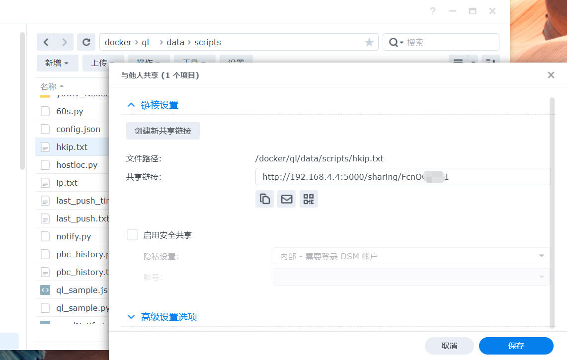5、 手动运行一次没有报错,就可以进青龙目录下查看输出的txt文件,我这里是在群晖上搭建的Docker。所以直接进群晖查看,然后共享文件供openwrt路由优选调用。