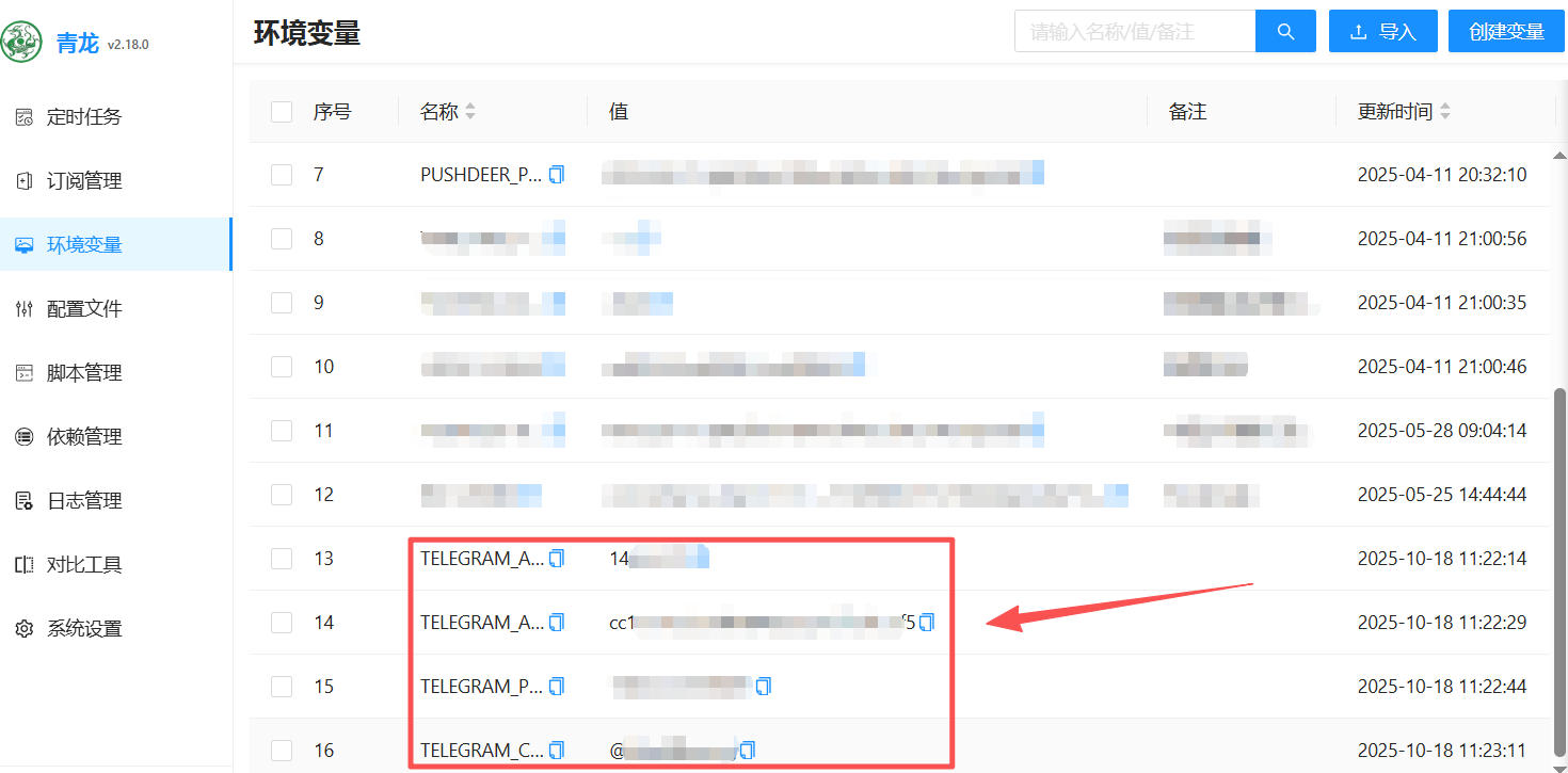 # 青龙面板环境变量配置